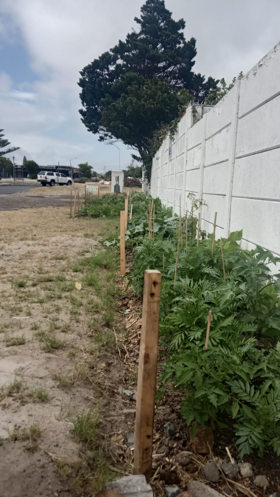 Ghalema Easton is the brains and body behind Creating Eden, which on Facebook describes itself as ‘a Mission to grow fruit and veg in unused public spaces, growing free food for the needy..starting with a little verge outside your home…’ She is a pensioner who, since lockdown started, been helping to transform the verges on a number streets in the neighbouring suburbs of Plumstead and Diep River into lush food gardens. They also have created and are taking care of The Palliative Care Unit Food Garden at Victoria Hospital. You can read some more about them on this IOL article.